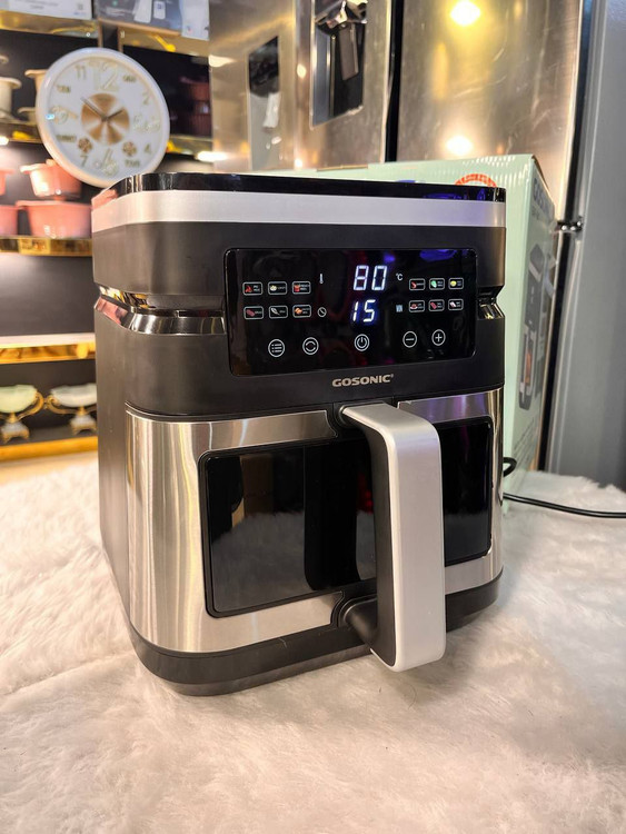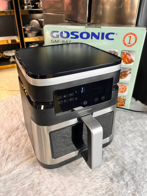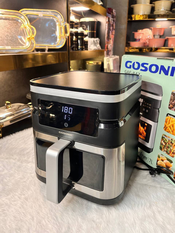 سرخ کن بدون روغن Gosonic GAF-847 با ظرفیت بزرگ ۷ لیتر و توان مصرفی ۲۰۰۰ وات، انتخابی مناسب برای خانوادههای پرجمعیت است. این دستگاه با ۱۲ برنامه پخت پیشفرض، امکان تهیه انواع غذاهای سالم مثل مرغ، ماهی، سیبزمینی و شیرینی را بدون نیاز به روغن یا با حداقل روغن فراهم می کند.