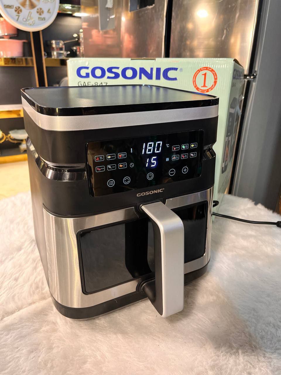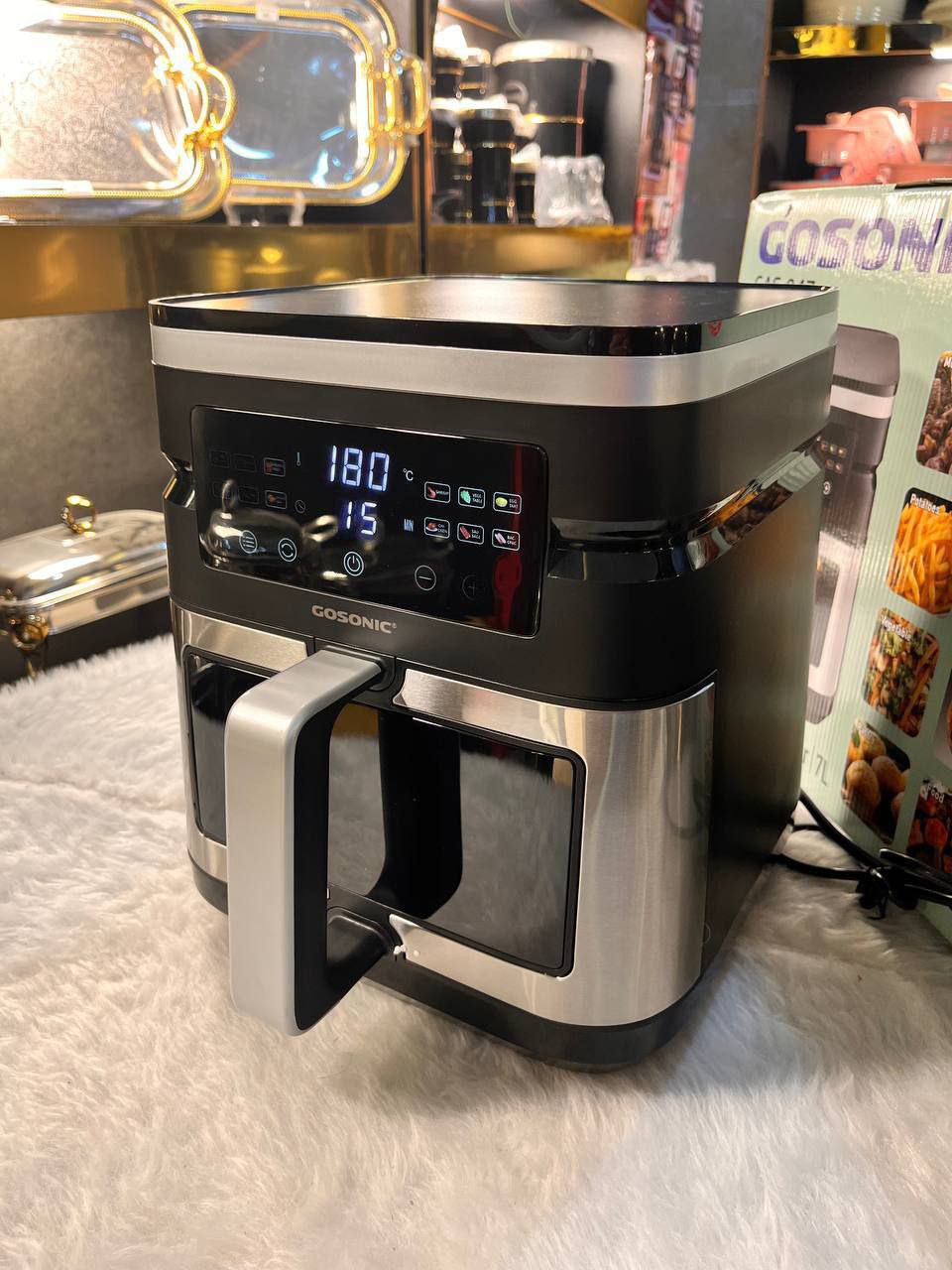 سرخ کن بدون روغن Gosonic GAF-847 با ظرفیت بزرگ ۷ لیتر و توان مصرفی ۲۰۰۰ وات، انتخابی مناسب برای خانوادههای پرجمعیت است. این دستگاه با ۱۲ برنامه پخت پیشفرض، امکان تهیه انواع غذاهای سالم مثل مرغ، ماهی، سیبزمینی و شیرینی را بدون نیاز به روغن یا با حداقل روغن فراهم می کند.