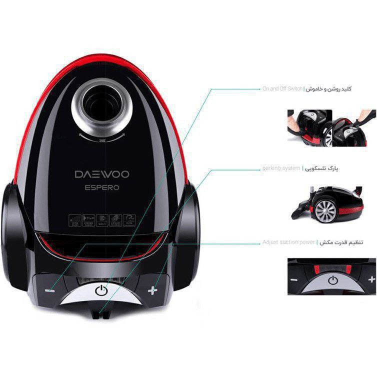 جاروبرقی کیسهدار برند: دوو مدل: DVC-S221W گرید انرژی: A دسته ارگونومیک دارای برس توربو گارانتی ۲۴ ماهه انتخاب سرویس