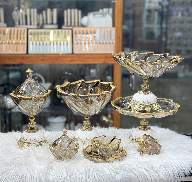 ۴تیکه اصلی+ ۱۲عدد پیاله+ ۱۲عدد پیش دست+ ۱۲عدد فنجان+ ۲عدد قندان میباشد