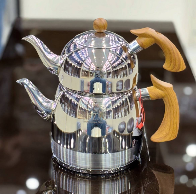 🍃کتری قوری لولهایی دسته دار استیل با قوری استیل درجه۱😍