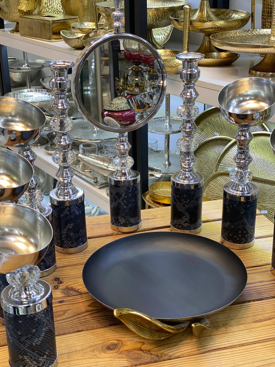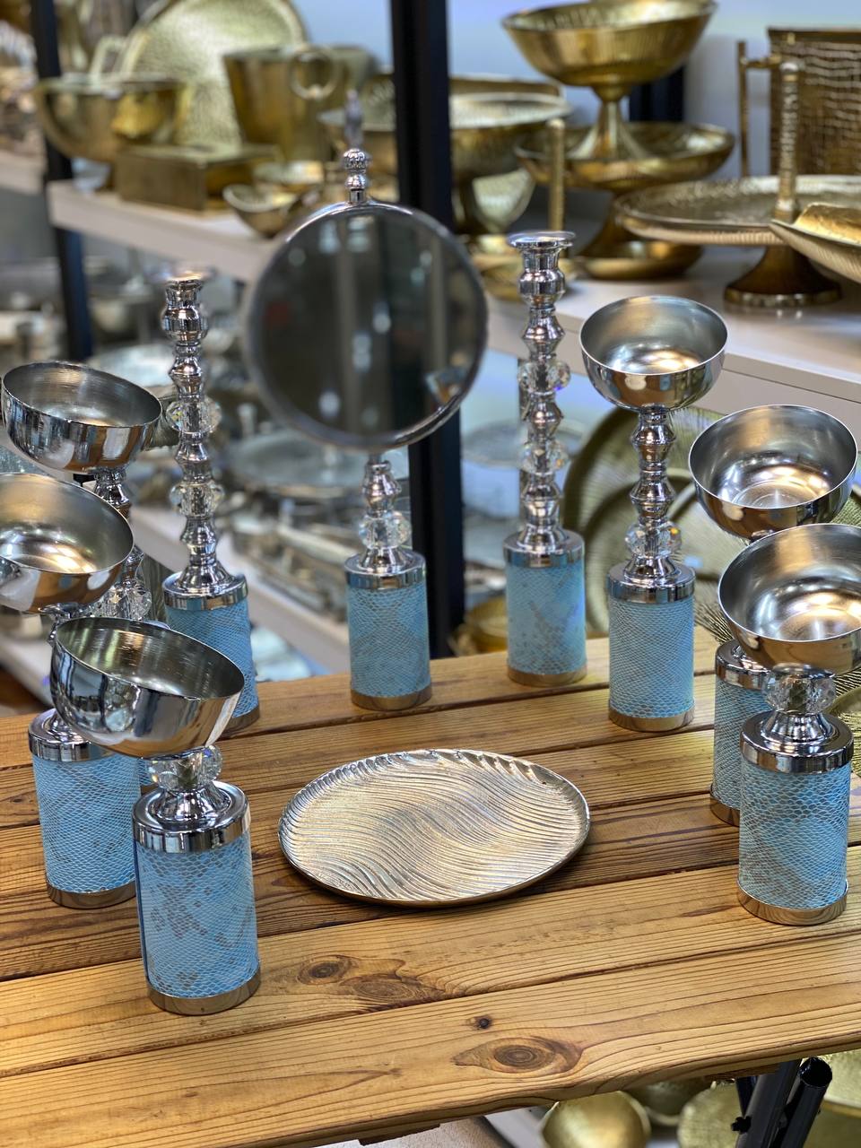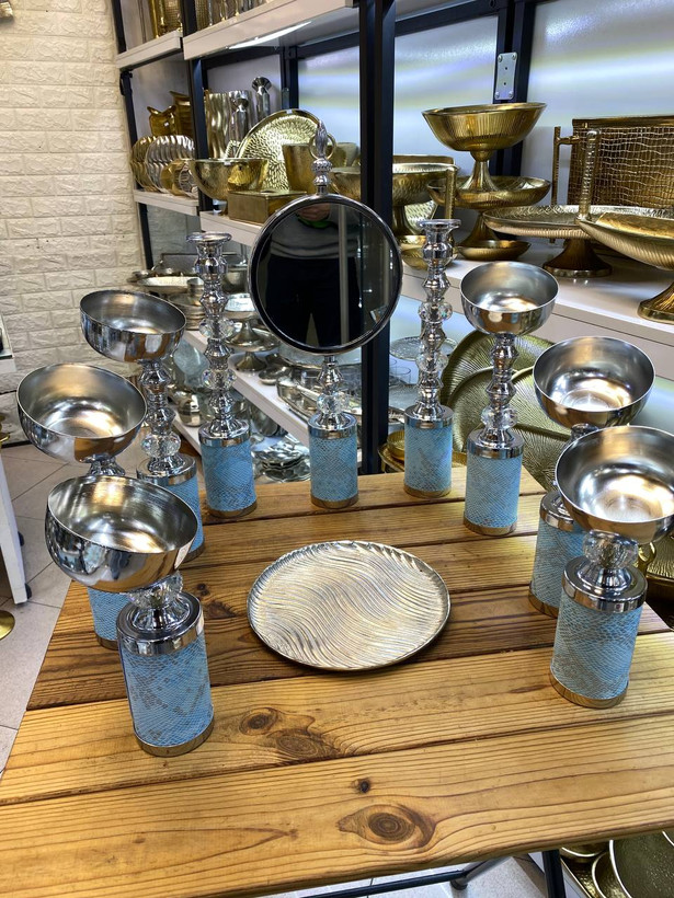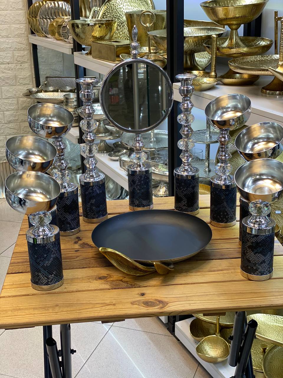 ترکیبی چشمنواز از بلور شفاف و فلز صیقلی که با طراحی خاص و جزئیات دقیق، هفتسینی متفاوت و لوکس را خلق کرده است. درخشش فلز در کنار بافت ظریف بلور، جلوهای مدرن و در عین حال اصیل به سفره نوروزی شما میبخشد.